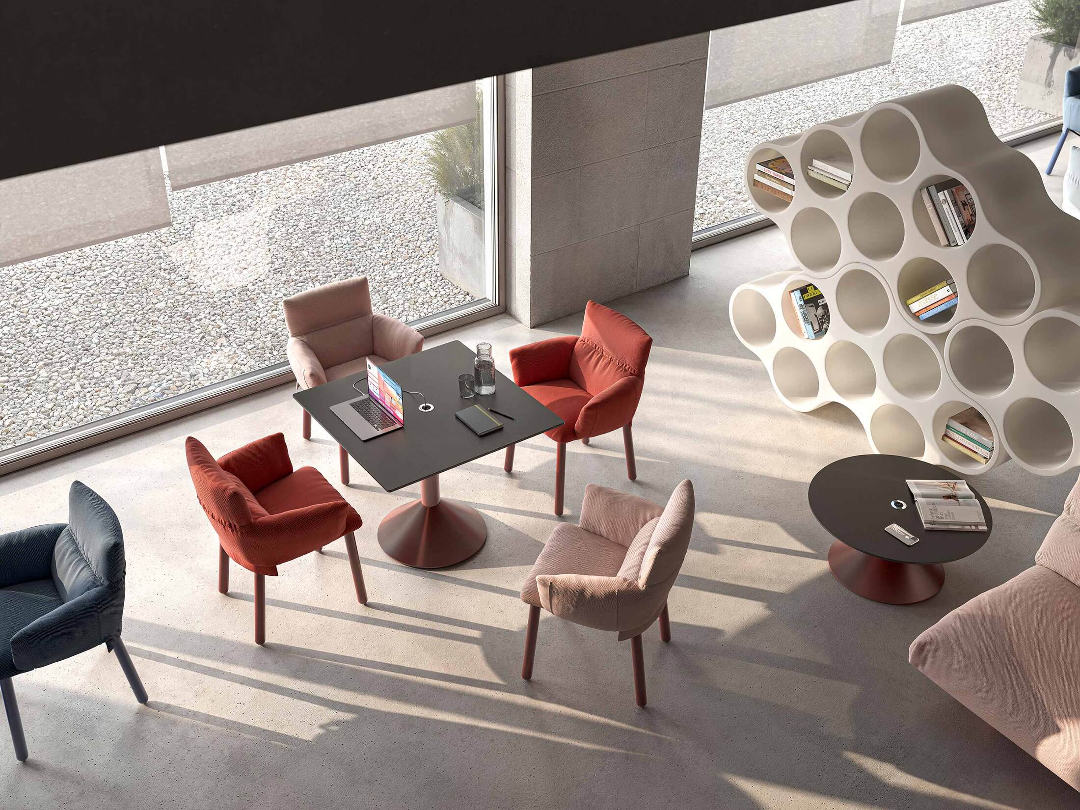 Nazwa Lud’o Tech nie jest przypadkowa: wszystkie modele z tej rodziny zostały zaprojektowane tak, by mogły współpracować z rozwiązaniami elektryfikacji (prowadzenie przewodów, gniazda, ładowarki), co czyni je wyjątkowo praktycznym wyborem do przestrzeni o dużym natężeniu ruchu – hoteli, biur czy stref coworkingowych. To atut rzadko spotykany w stolikach pomocniczych i realna przewaga w projektach contract.