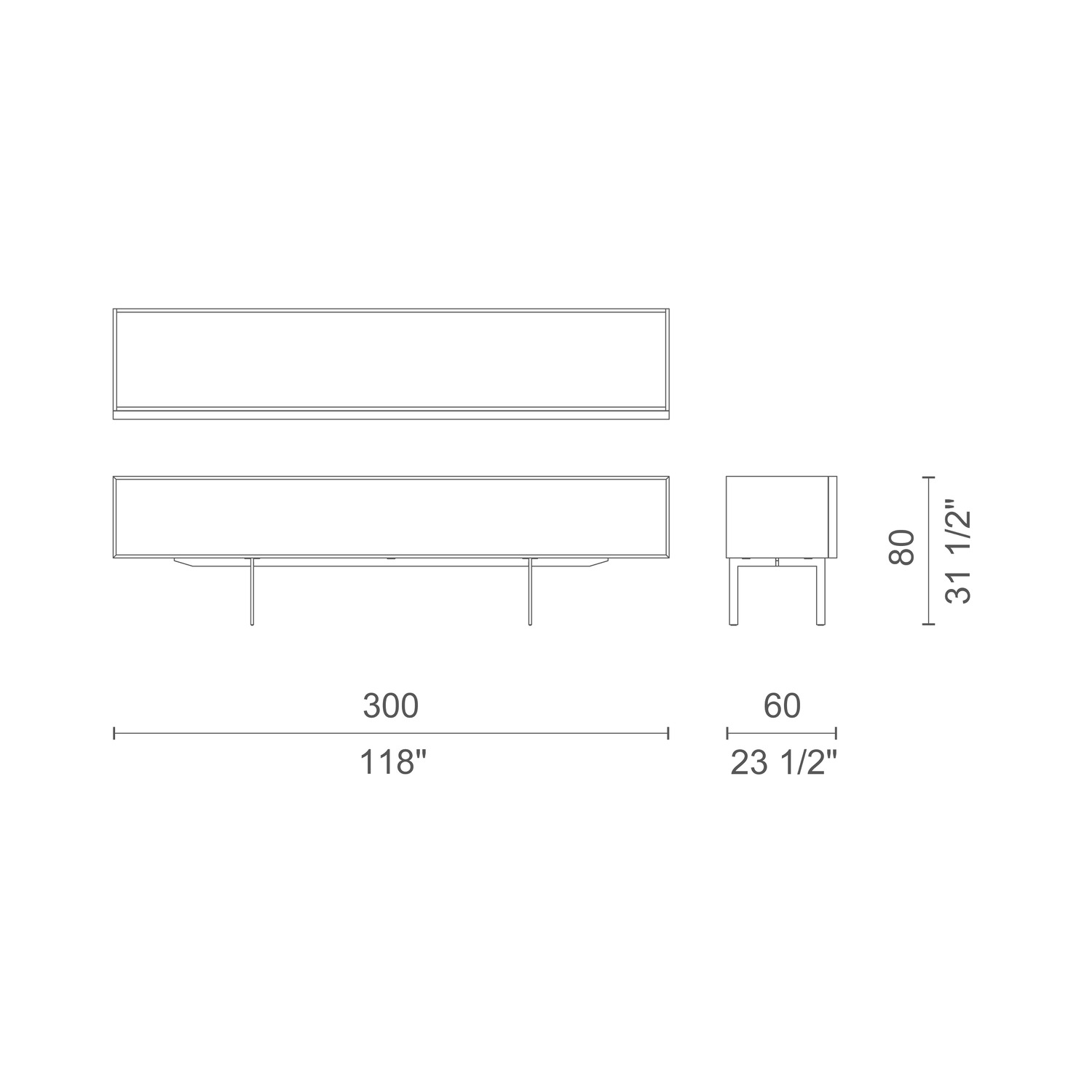 Cabinet Long: ok. 300 × 60 × 80 cm.