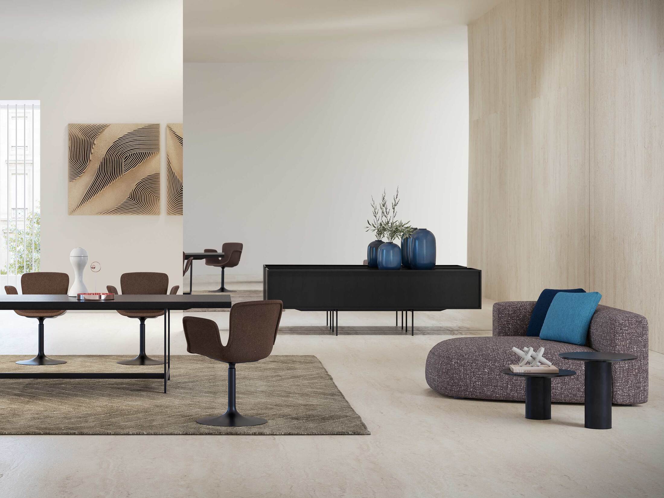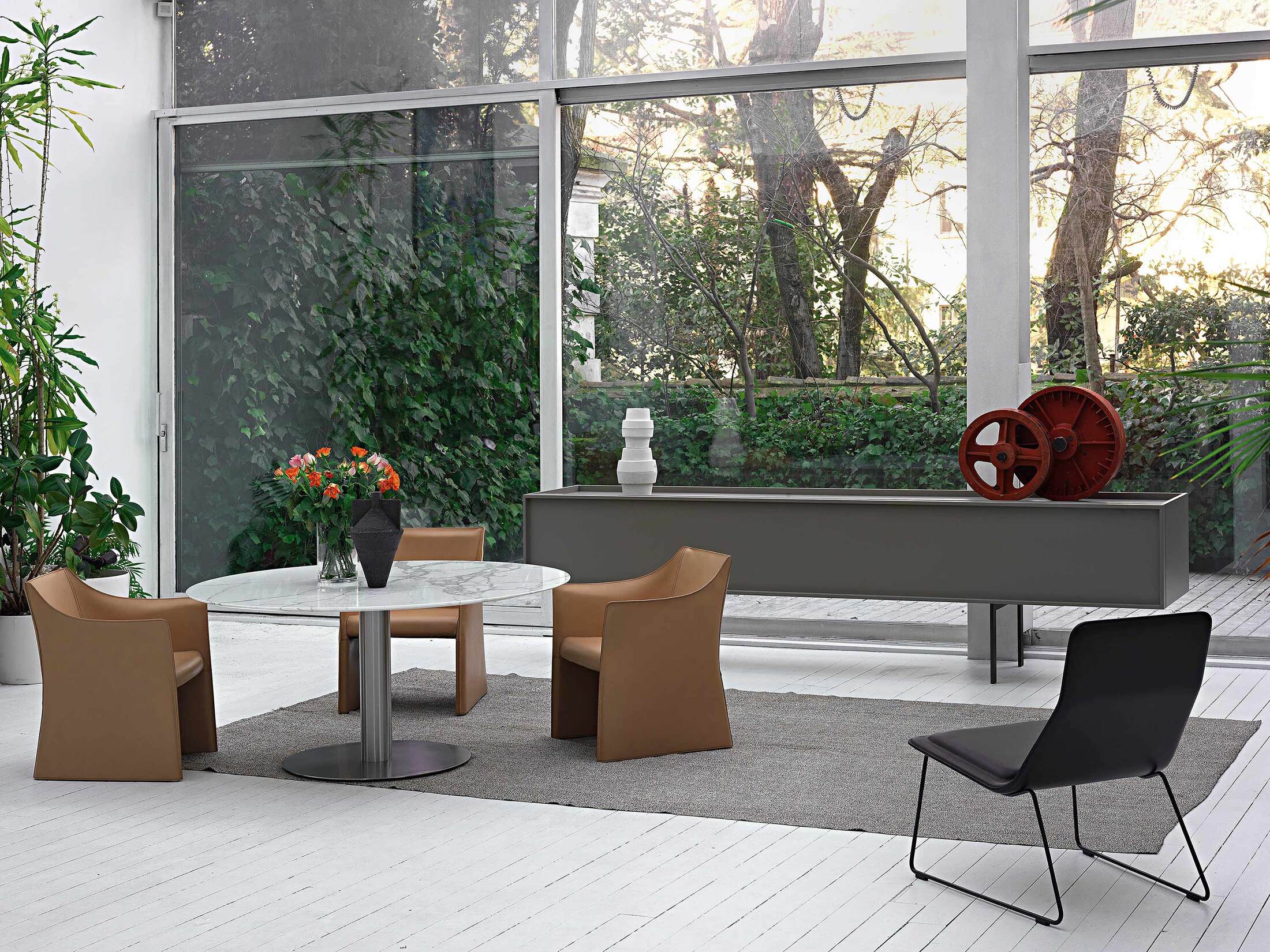 Lochness świetnie komponuje się z Lochness Table oraz innymi meblami Cappellini, tworząc konsekwentny, elegancki zestaw do salonu, jadalni lub biura.