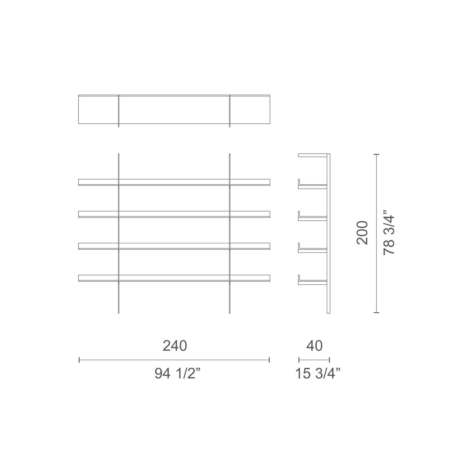 System Aliante oferuje dwie szerokości: 180×40×200 cm i 240×40×200 cm – idealne do salonu, domowego biura czy biblioteki. Regał dostępny jest w wielu konfiguracjach wiszących, a półki można personalizować kolorystycznie (również w wielokolorowych zestawieniach), co ułatwia dopasowanie do istniejącej aranżacji i słów kluczowych takich jak regał do salonu, regał designerski, czy regał na książki.